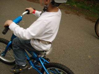 Later, the campers hiked some more (really it was more of a "playing around" than a formal hike, according to the official hike planner) and even found time to ride bikes. At some point that morning, Ty found a large feather (duck maybe). He stuffed it in his pocket and Shane thought it was hysterical, hence the reason it is majority of the pictures.